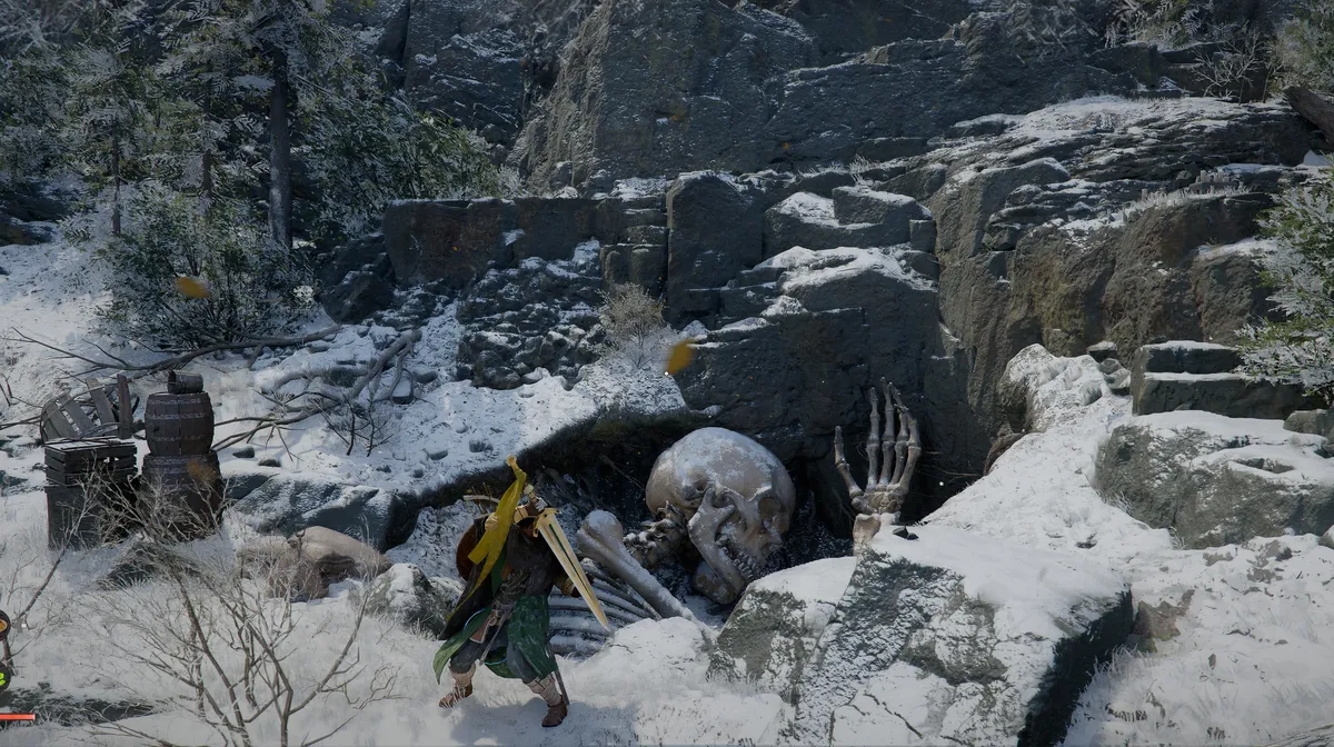 • A giant skeleton half-buried in the snow